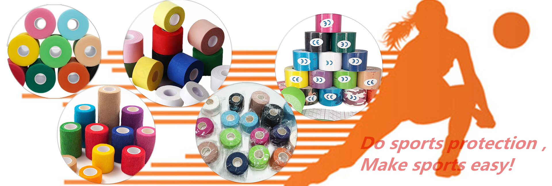 Productos principales:Cinta de kinesiología, cinta deportiva de óxido de zinc, vendaje adhesivo cohesivo, cinta deportiva, cinta de flejado